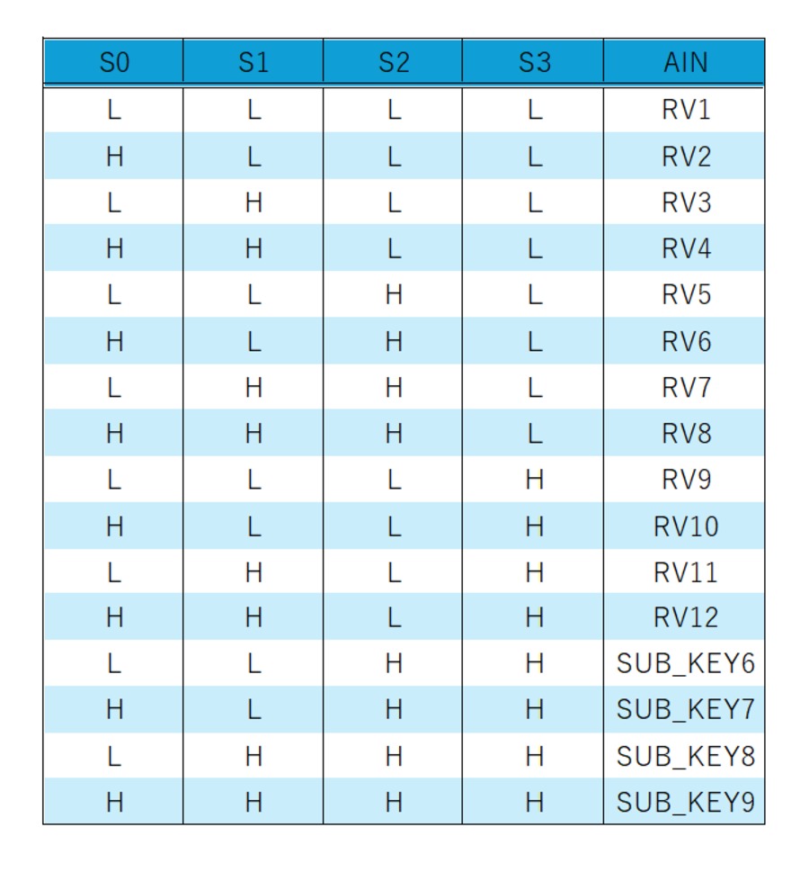 磁気スイッチはKEY0~5と、SUB_KEY6~9の10個あり、SUB_KEY6~9の4個はアナログマルチプレクサ経由でアナログ値を取得する仕様です。